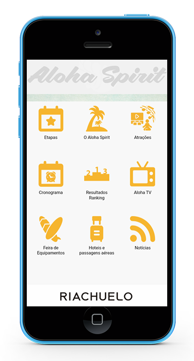 O quinto e último app mais acessado dessa categoria é o Aloha Spirit (http://app.vc/alohaspirit), com mais de 6.300 visualizações. O app traz novidades e informações sobre o maior evento de esportes aquáticos do país, que ocorre em Ilhabela, Cabo Frio e Salvador. Além de etapas, o Aloha Spirit, atrações, cronograma, resultados – ranking, Aloha TV, feira de equipamentos, hotéis e passagens aéreas e notícias.